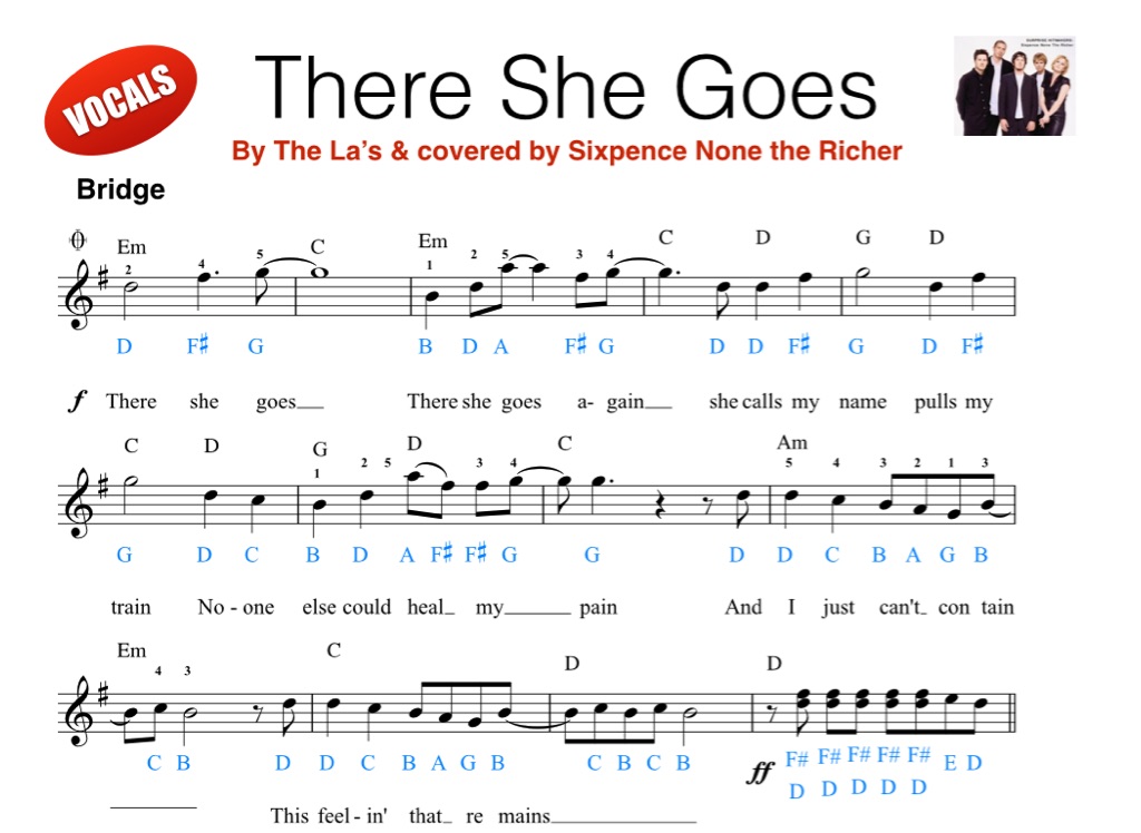 An arrangement of “There She Goes”, for a Year 7 topic called “Keyboard Crazy”. The song was originally by the La’s and covered by Sixpence None the Richer. The transcription/arrangement is my own and intended for academic purposes only.