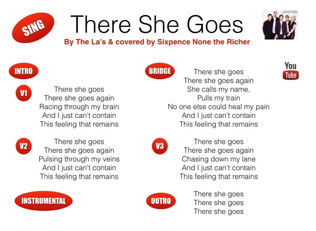 An arrangement of “There She Goes”, for a Year 7 topic called “Keyboard Crazy”. The song was originally by the La’s and covered by Sixpence None the Richer. The transcription/arrangement is my own and intended for academic purposes only.