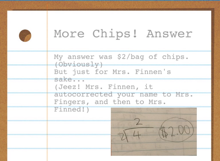 (Jeez! Mrs. Finnen, it autocorrected your name to Mrs. Fingers, and then to Mrs. Finned!)