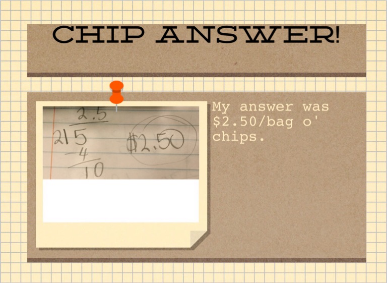 My answer was $2.50/bag o' chips.