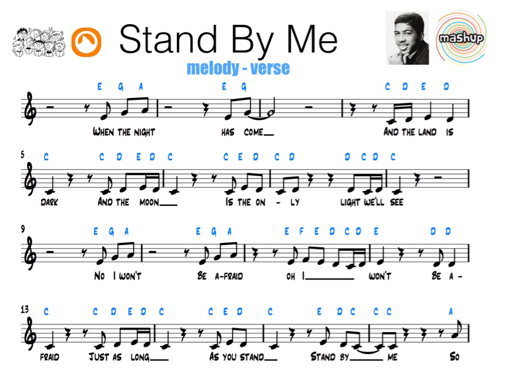 Year 9 Music topic, on Mashups. Students look at creating a mashup of at least two different pop songs, including Stand By Me. Video tutorials for bass and chords on keys and guitar are included.