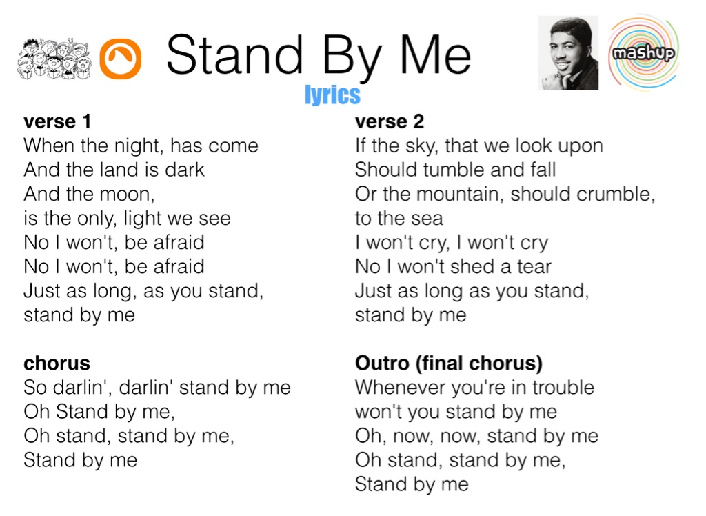 Year 9 Music topic, on Mashups. Students look at creating a mashup of at least two different pop songs, including Stand By Me. Video tutorials for bass and chords on keys and guitar are included.