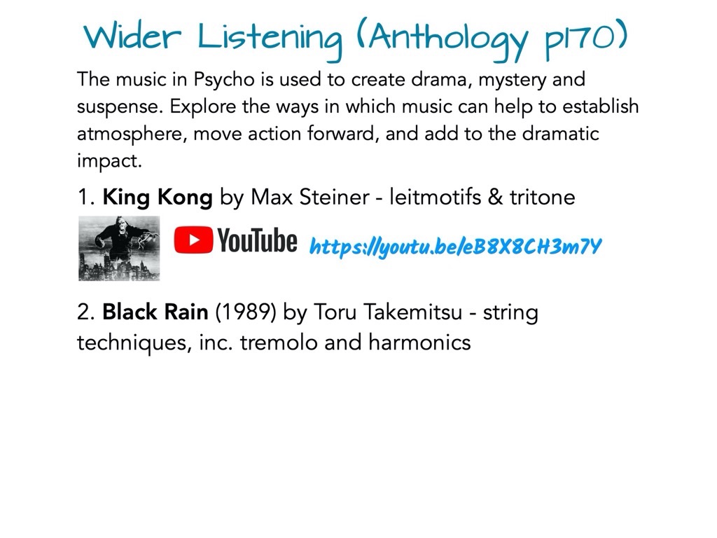 Introduction to the Edexcel A level Set work “Psycho” by Bernard Herrmann. - Contains analysis of cues and background info.