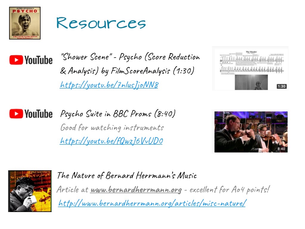 Introduction to the Edexcel A level Set work “Psycho” by Bernard Herrmann. - Contains analysis of cues and background info.