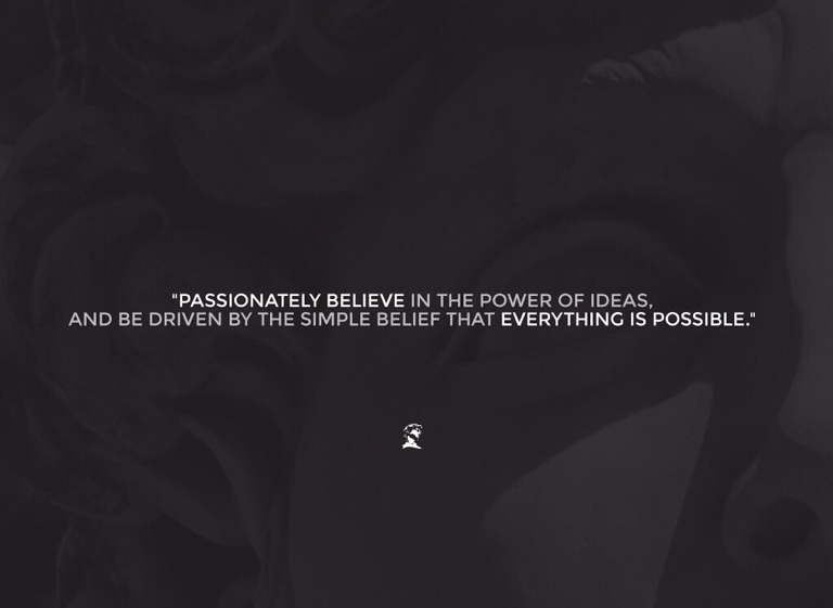 "PASSIONATELY BELIEVE IN THE POWER OF IDEAS, AND BE DRIVEN BY THE SIMPLE BELIEF THAT EVERYTHING IS POSSIBLE."